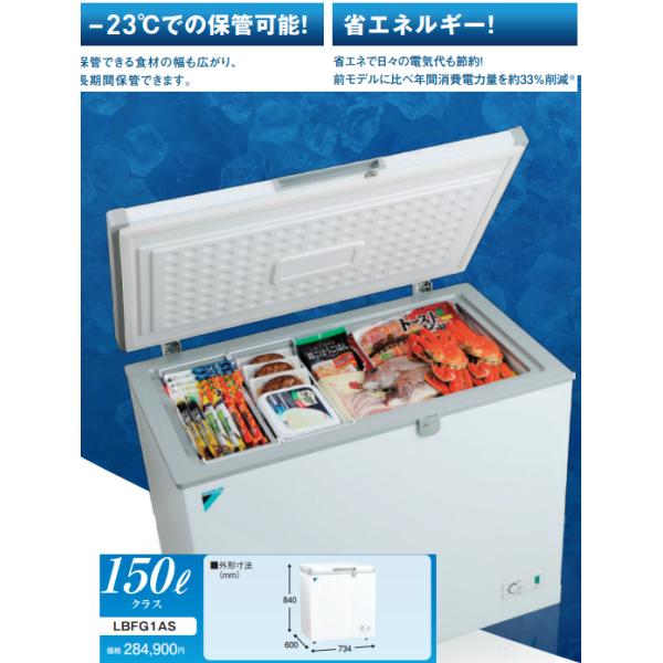 | 商品の特徴 | ダイキン 【LBFG1AS】DAIKIN冷凍ストッカー150Lタイプ 食品たっぷり。冷凍プラグインショーケース/冷凍ストッカー | 中温用エアコン・冷凍。業務用冷凍ストッカー | 冷凍プラグインショーケース/冷凍ストッカー。ダイキン工業 冷凍ストッカー新品未使用、未開封の為、梱包写真にて出品致します。また、出荷時は写真の梱包状態に送り状を貼らせて頂き、出荷となります。重量、サイズ上、ヤマト運輸では出荷できない為、送り先のご住所をご教示頂きます。製品番号:LBFG1AS-W(150L)メーカー希望小売価格284,900円詳細は添付メーカーカタログ参照ください。多少の値下げ交渉はお請け致します。。業務用冷凍ストッカー | 冷凍プラグインショーケース/冷凍ストッカー。SHARP/シャープ 冷凍冷蔵庫 415L SJ-GT42E-R 2019年製。2021年冷蔵ショーケース JCMS-415 送料無料 -中古品。ホシザキ 業務用冷凍庫 HF-63AT。I947\" SHARP 3ドア 412L 冷蔵庫 SJ-G415H-W ホワイト | ||
